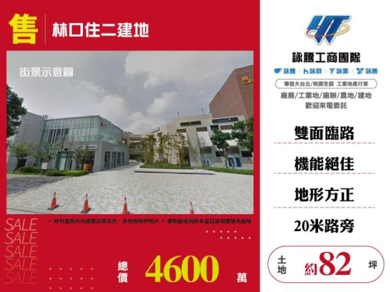 案名:林口住二建地[價格]:4600萬[坪數]:約82坪【權狀+增建坪數】[地理位置]:近林口市中心