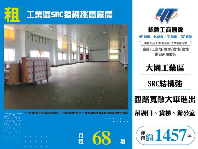 商品介紹:工業區SRC單層挑高廠房,特色說明:臨路12米,挑高4米,電力設備 三相380V,位大園工業區,鄰近台15線、61快速、大園交流道,交通便捷,機能棒好招工,SRC廠房結構強,格局方正,備吊裝口,臨路寬大車好進出,適合加工、製造、倉庫等。