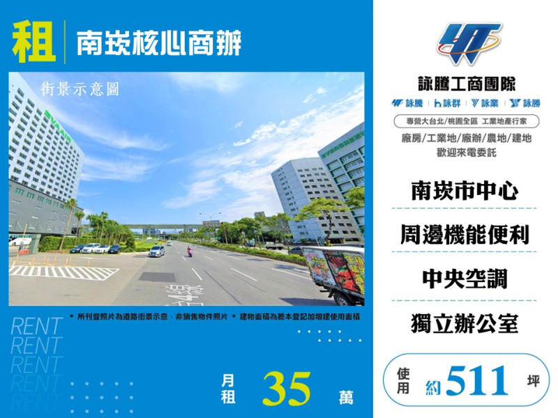 案名:南崁核心商辦[租金]:35萬[坪數]:約511坪[周邊]:南崁市中心