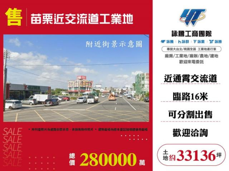 案名:苗栗近交流道工業地[價格]:280000萬[坪數]:約33136坪【權狀+增建坪數】[地理位置]:近通霄交流道