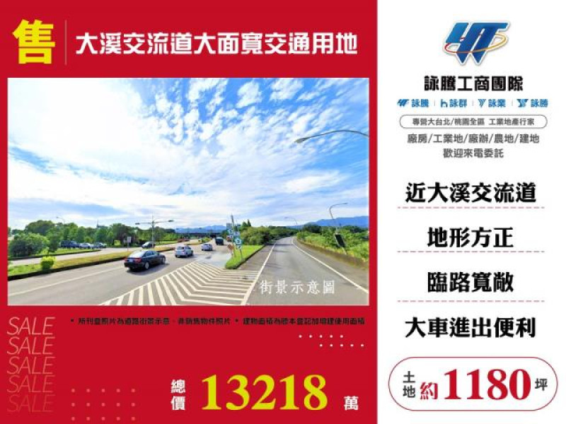 案名:大溪交流道大面寬交通用地[價格]:13218萬[坪數]:約1180坪【權狀+增建坪數】[地理位置]:近大溪交流道
