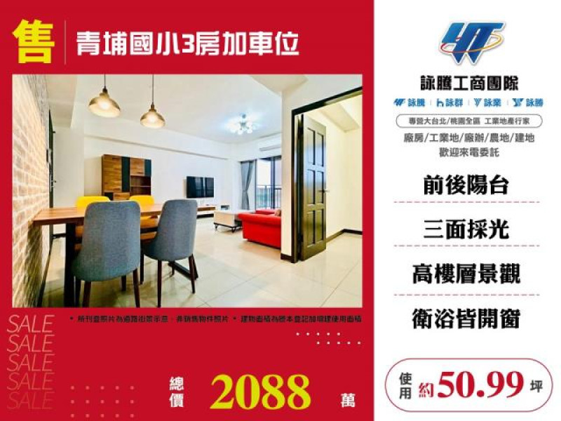 案名:青埔國小3房加車位[價格]:2088萬[坪數]:約50.92坪[周邊]:青埔國小