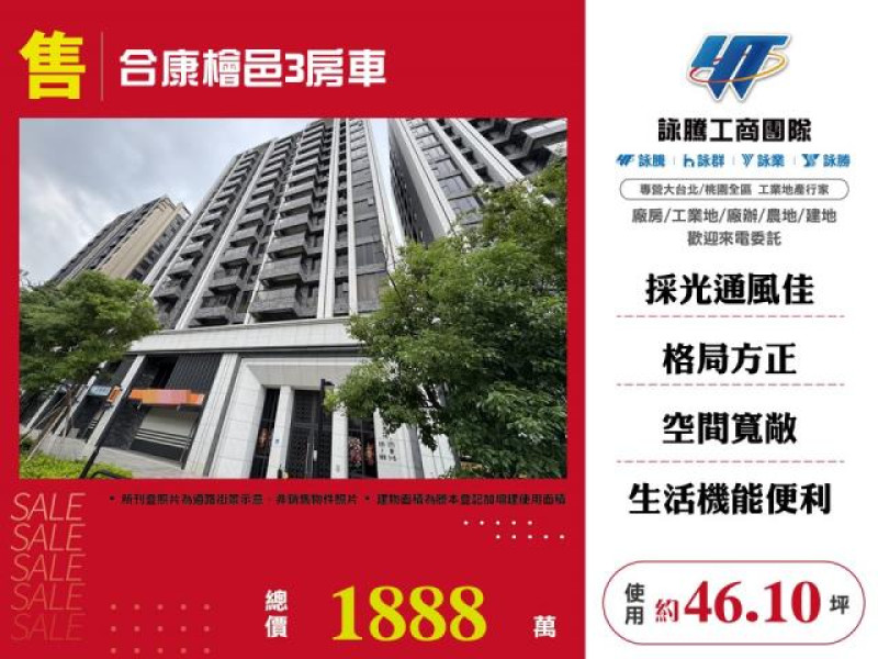 案名:合康檜邑3房車[價格]:1888萬[坪數]:約46.10坪[周邊]:新永和市場