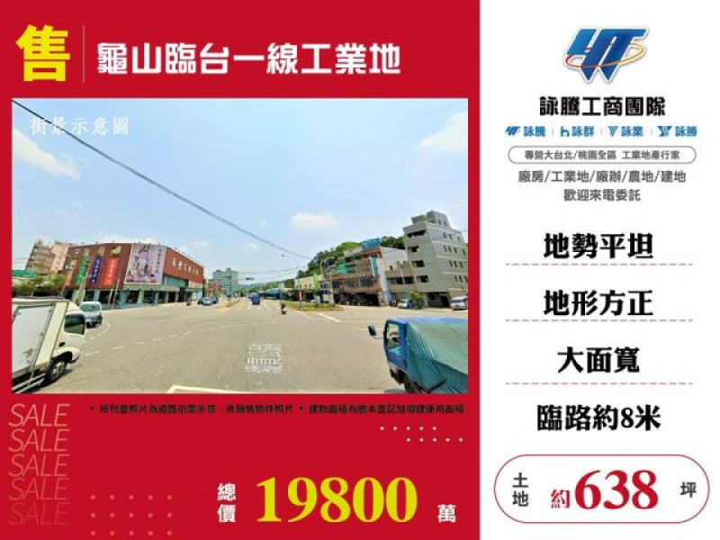 案名:龜山臨台一線工業地[價格]:19800萬[坪數]:約638坪[交通]:台一線