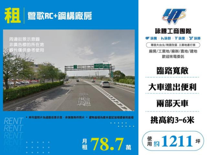 商品介紹:鶯歌RC+鋼構廠房,特色說明:臨路 約7米,挑高 約3-6米,電力 49馬,交通:鶯歌交流道.交通便利,臨路寬敞.大車可進出,廠區備有天車.好規劃利用。