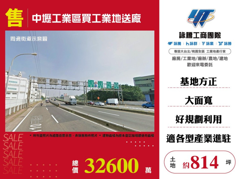 商品介紹:中壢工業區買工業地送廠,特色說明:臨路 約12米,正中壢工業區.內壢交流道,基地方正.大面寬.好規劃設廠,適各型產業進駐.企業總部首選。