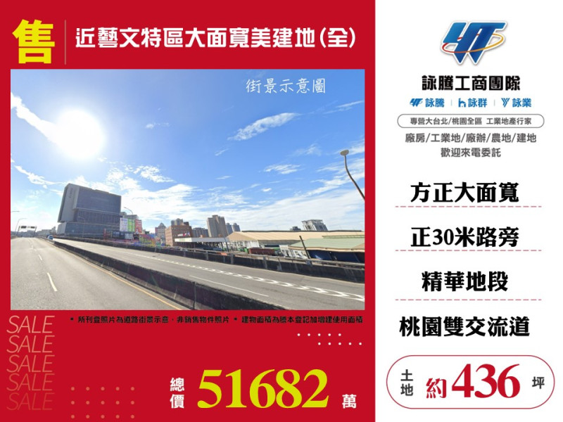 商品介紹:近藝文特區大面寬美建地(全),臨路30米,近桃園雙交流道,正30米大馬路旁,地形方正,大面寬好規劃,車水馬龍店面效益強,適連鎖企業投資進駐,買地送建物。