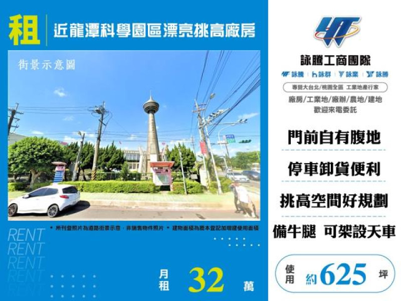 商品介紹:龍潭科學園區漂亮挑高廠房,特色說明:臨路 約6米,挑高 約14米,電力 三相220V,龍潭科學園區,適鄰近廠商,加工製造、倉儲運輸等,門前自有腹地雨遮,各式大車進出卸貨便利,好停車,廠內挑高,格局方正,備牛腿可架設天車。