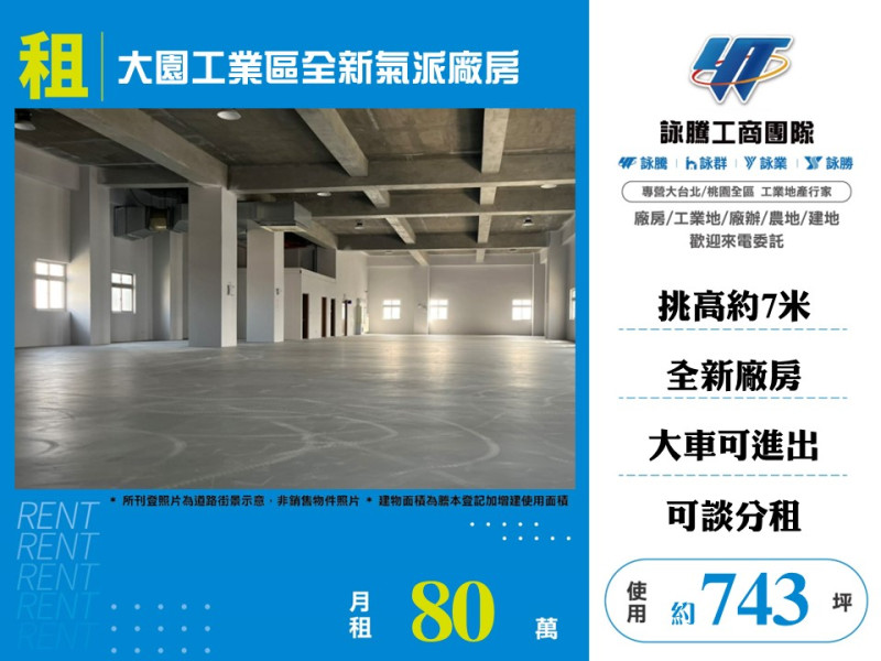 商品介紹:大園工業區全新氣派廠房,特色說明:臨路 約15米,挑高 約7米,電力 三相380V,近大園交流道 交通便利,臨路寬敞 大車可進出,全新廠房 好規劃利用 可分租來電洽詢。