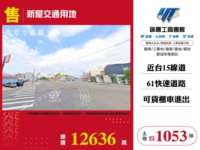 案名: 新屋交通用地[價格]:12636萬[坪數]:約1053坪[交通幹道]:近台15.61快速道路