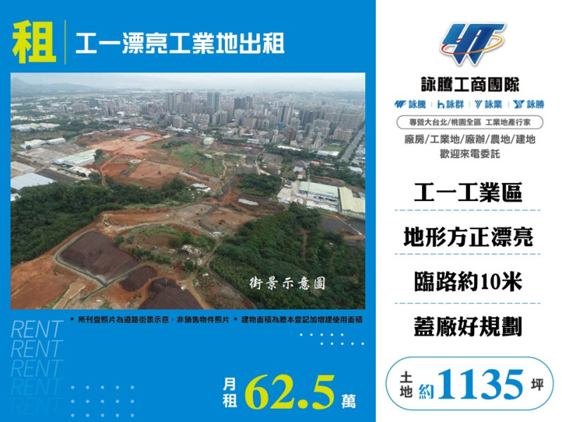 商品介紹:工一漂亮工業地出租,特色說明:臨路 約10米,正工一工業區內產專用地,林口交流道旁,交通便利,地形比例漂亮、蓋廠好規劃。